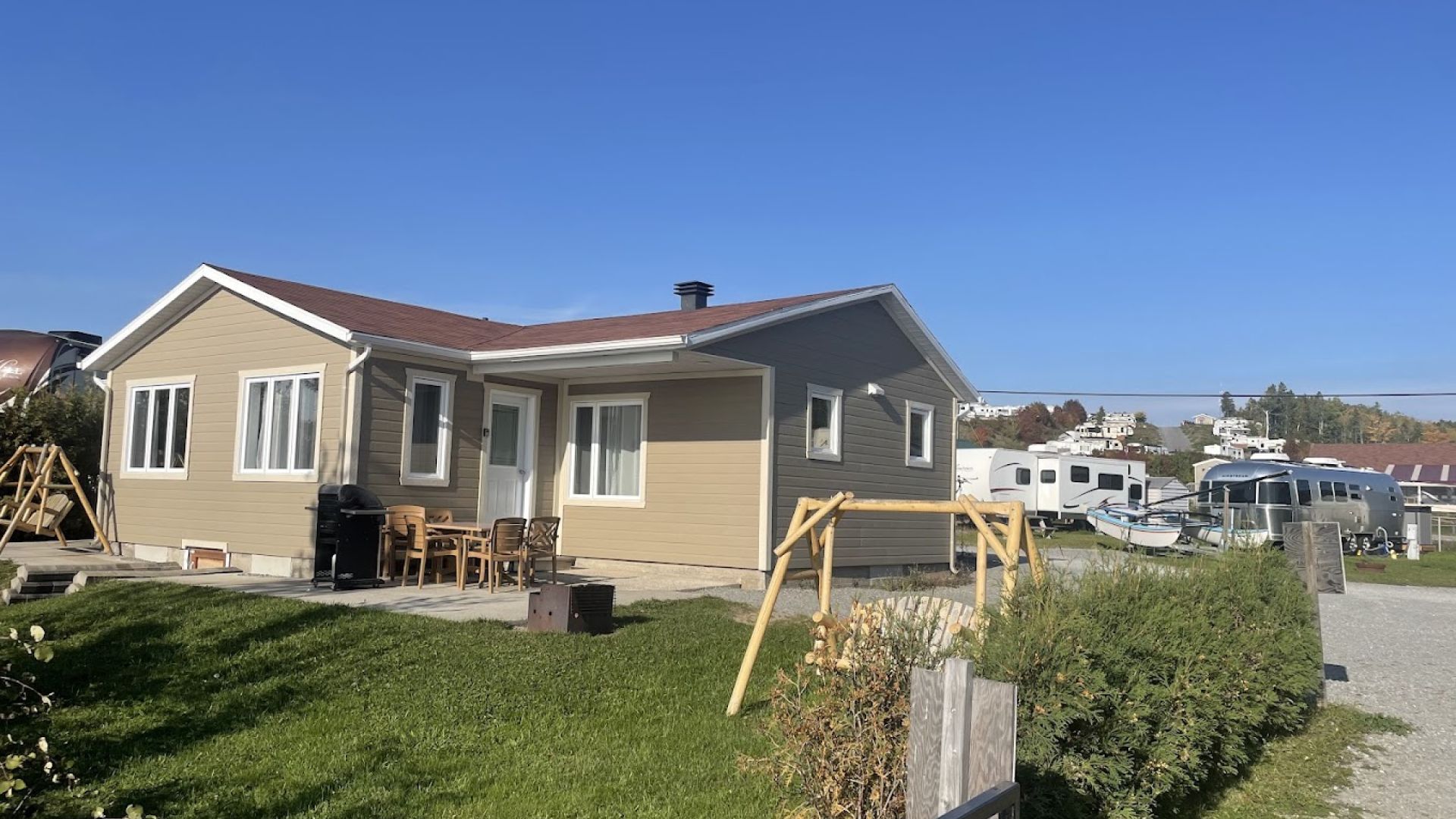 Classé 5 étoiles par Camping Québec, il a été nommé Camping de l’année en 2016 et 2022 et a obtenu la note parfaite de 10/10*/10 par Good Sam, ainsi que la certification environnementale Kamp Green niveau 3 de KOA. Le site offre 262 emplacements, dont 225 pour véhicules récréatifs entièrement desservis (20, 30 et 50 ampères, eau, égout, câble et Wi-Fi), 25 sites pour tentes et 12 chalets de luxe quatre saisons, certains en bord de plage.