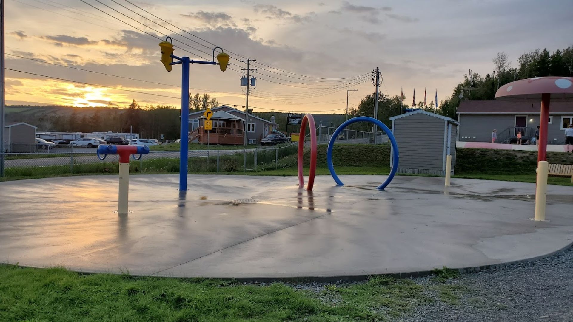 Les infrastructures comprennent une marina, un vaste parc d’amusement (piscine chauffée, glissade, jeux d’eau, minigolf, piste BMX), ainsi que plusieurs bâtiments incluant accueil, boutique, salle communautaire, restaurant-bar avec terrasse, salle de gym, buanderie et logement.