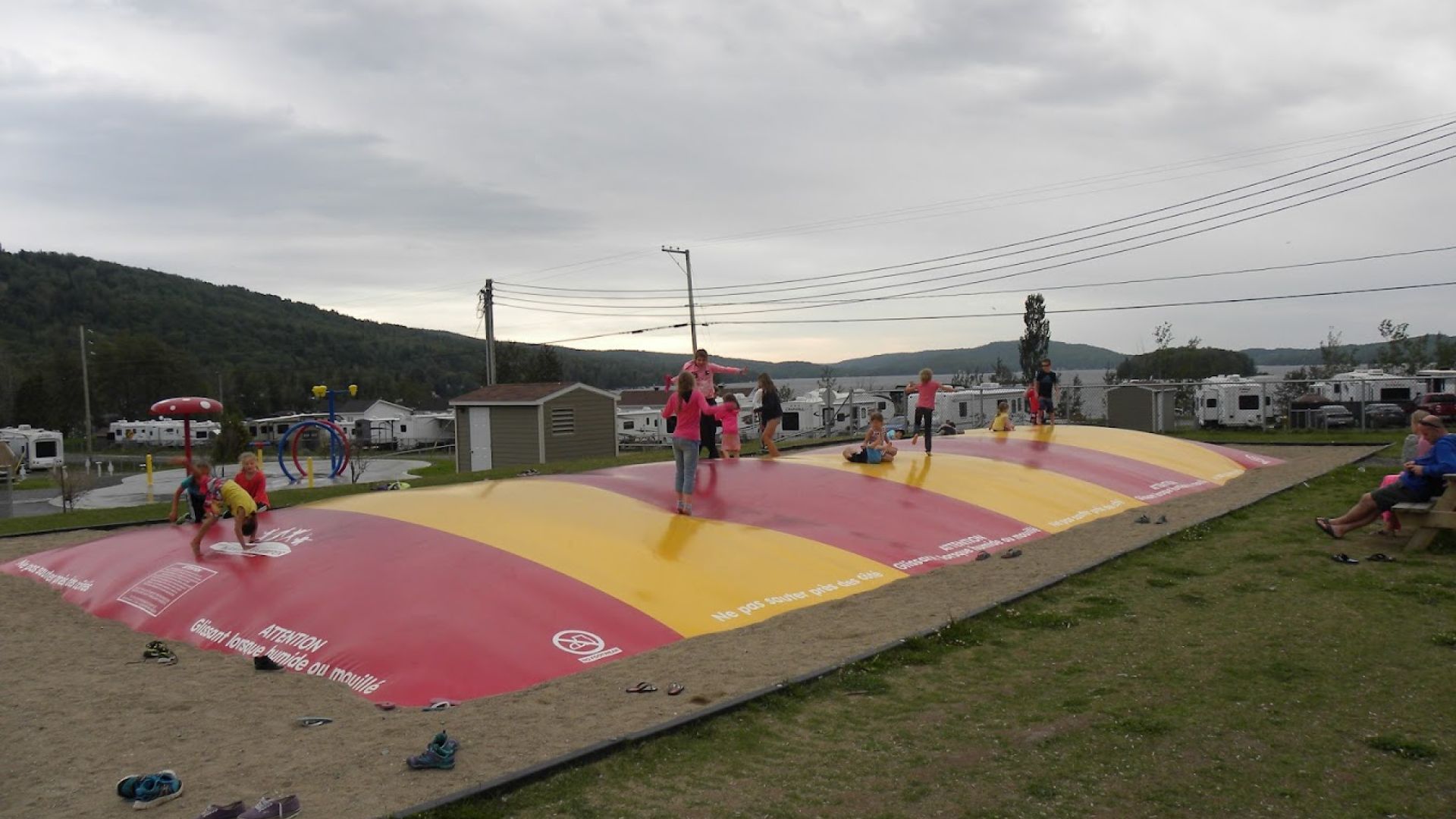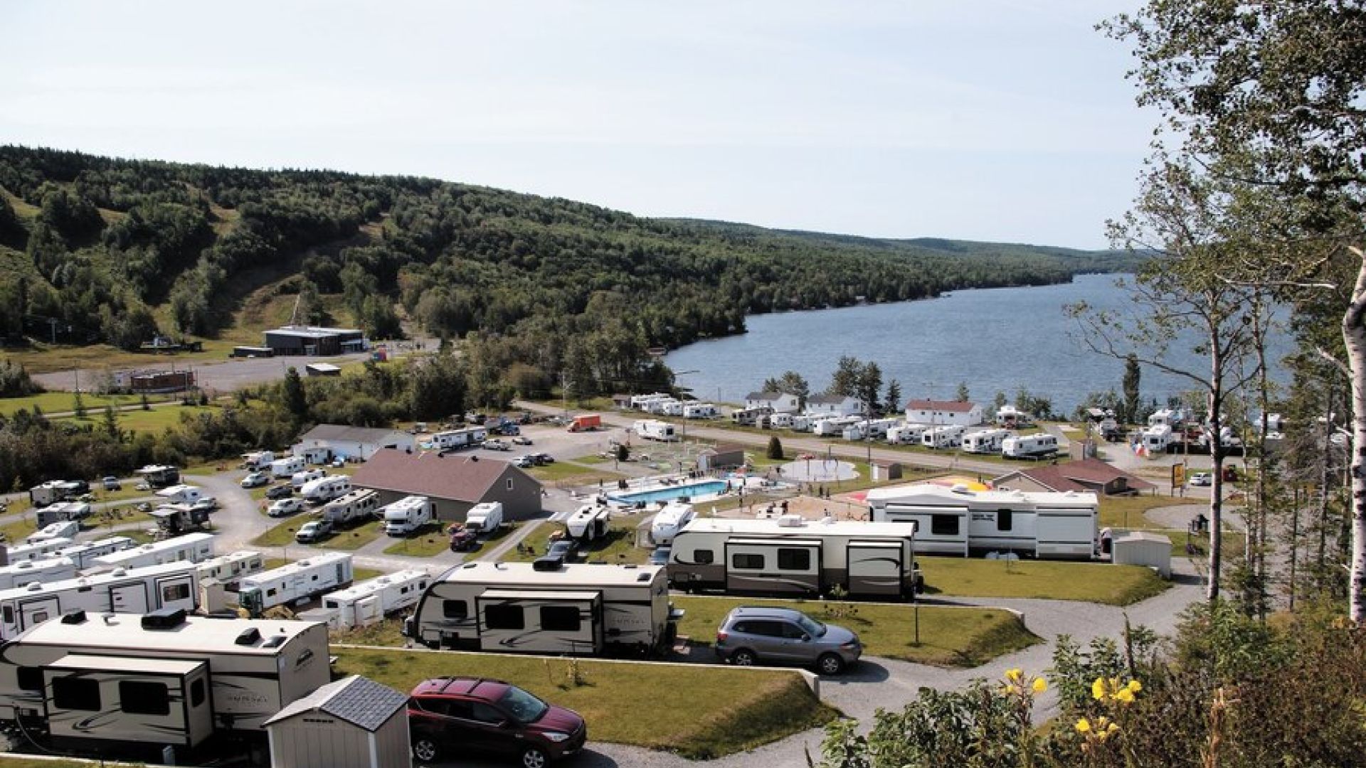 Les infrastructures comprennent une marina, un vaste parc d’amusement (piscine chauffée, glissade, jeux d’eau, minigolf, piste BMX), ainsi que plusieurs bâtiments incluant accueil, boutique, salle communautaire, restaurant-bar avec terrasse, salle de gym, buanderie et logement.