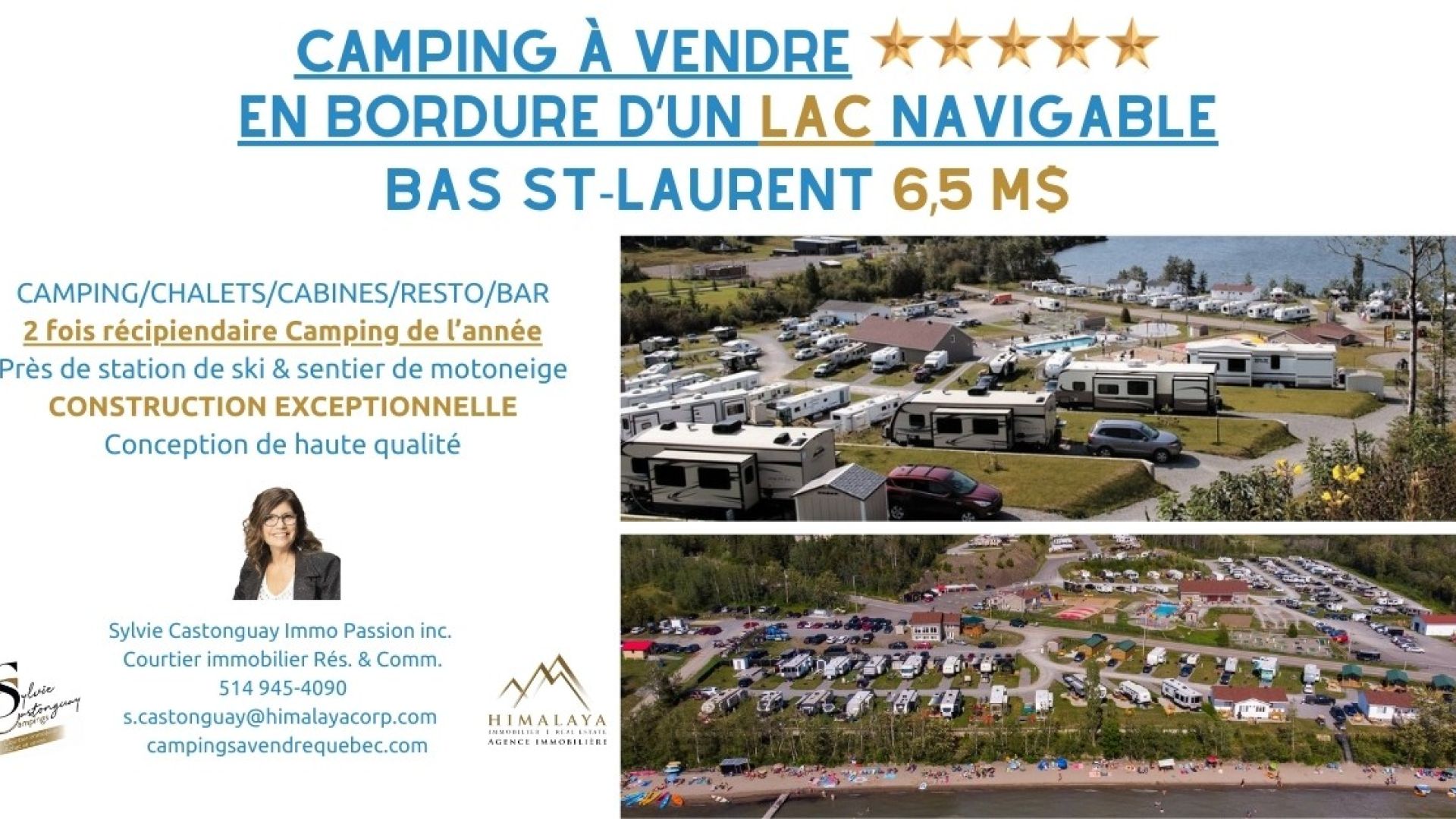 Classé 5 étoiles par Camping Québec, il a été nommé Camping de l’année en 2016 et 2022 et a obtenu la note parfaite de 10/10*/10 par Good Sam, ainsi que la certification environnementale Kamp Green niveau 3 de KOA. Le site offre 262 emplacements, dont 225 pour véhicules récréatifs entièrement desservis (20, 30 et 50 ampères, eau, égout, câble et Wi-Fi), 25 sites pour tentes et 12 chalets de luxe quatre saisons, certains en bord de plage.
