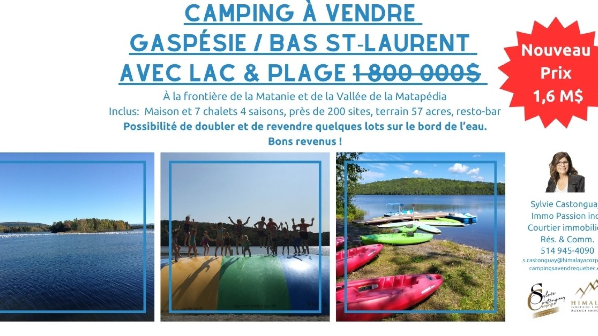 A une énorme possibilité d’agrandissement (le double). En opération depuis 1972. Sur ses 57 acres il y a 25 lots dont 7 en bordure du lac pouvant être revendus séparément soit pour du résidentiel, des chalets 4 saisons ou agrandir le camping.